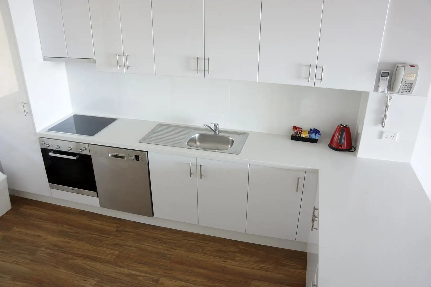 Fully equipped kitchen with full oven and cook top, large fridge/freezer microwave and generous cupboard space.