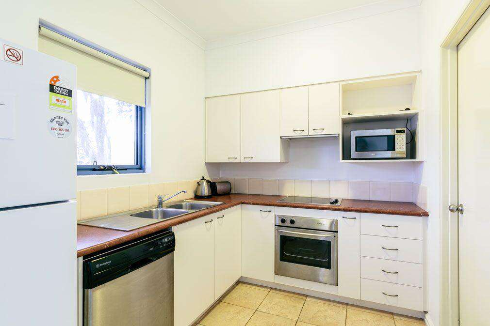 The kitchen is equipped with everything you would need. It has a full oven and separate cook top, a generous fridge/freezer, a microwave completed with lots of cupboard space and every amenity you would need.
