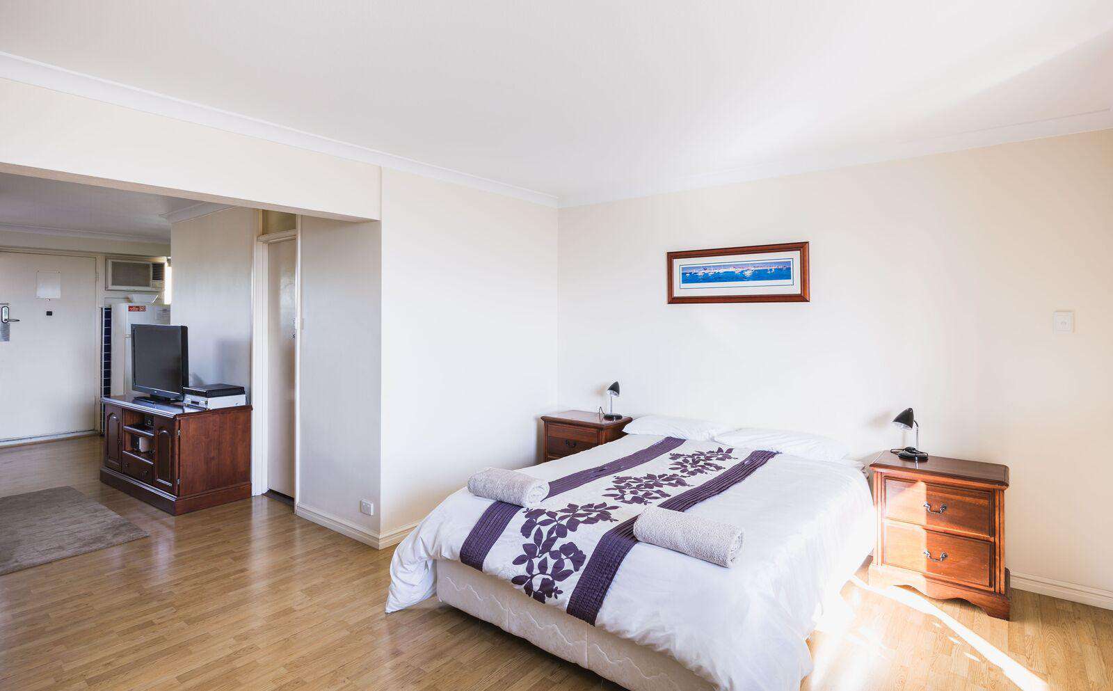 Studio apartment in a block overlooking Fremantle. The magnificent ever changing ocean view will captivate you by day and night.